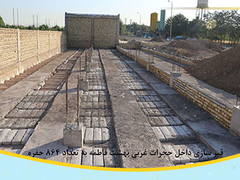 تکمیل و ساخت 864 حفره قبر سه طبقه به همراه ساخت 8 دهنه آرامگاه خانوادگی در ضلع غربی آرامستان بهشت فاطمه (س)